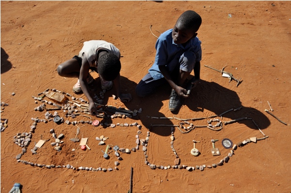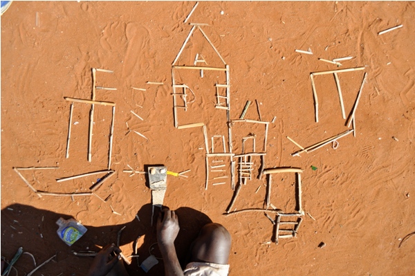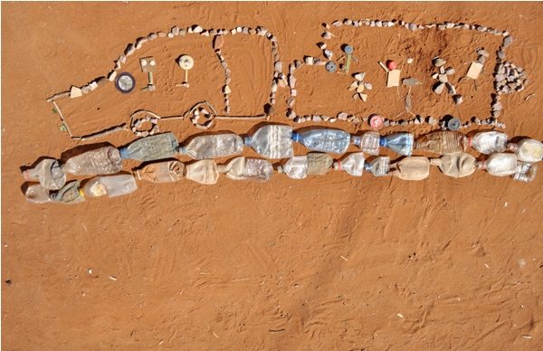 As ruas são pavimentadas com areia. A areia vem de uma lixeira e portanto tem lixo. Não foi filtrada antes de vir para os bairros e tem montes de pedaços de plástico, etc. As ruas não são praias mas têm, às vezes, ar disso. As crianças adoram e brincam no chão.