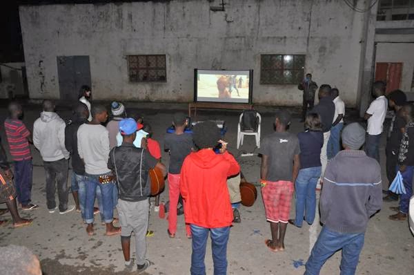 | Projecção do filme "Death Metal Angola" no pátio da Okutiuka |