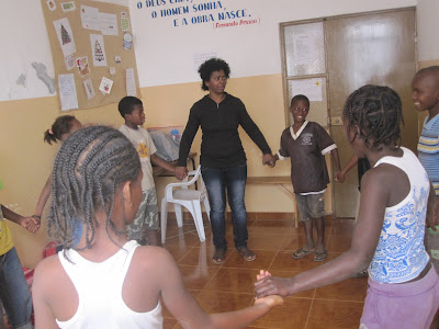 | Na sede da ACRIDES na Fazenda. A Rute com meninos de Lém-Cachorro |